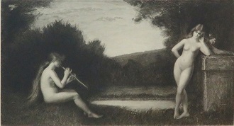 | ジャン=ジャック・エンネル (Jean-Jacques Henner:1829~1905) 『精霊の泉』 銅版画 I:30 X 54.5cm F:58 X 83cm 版上サイン |